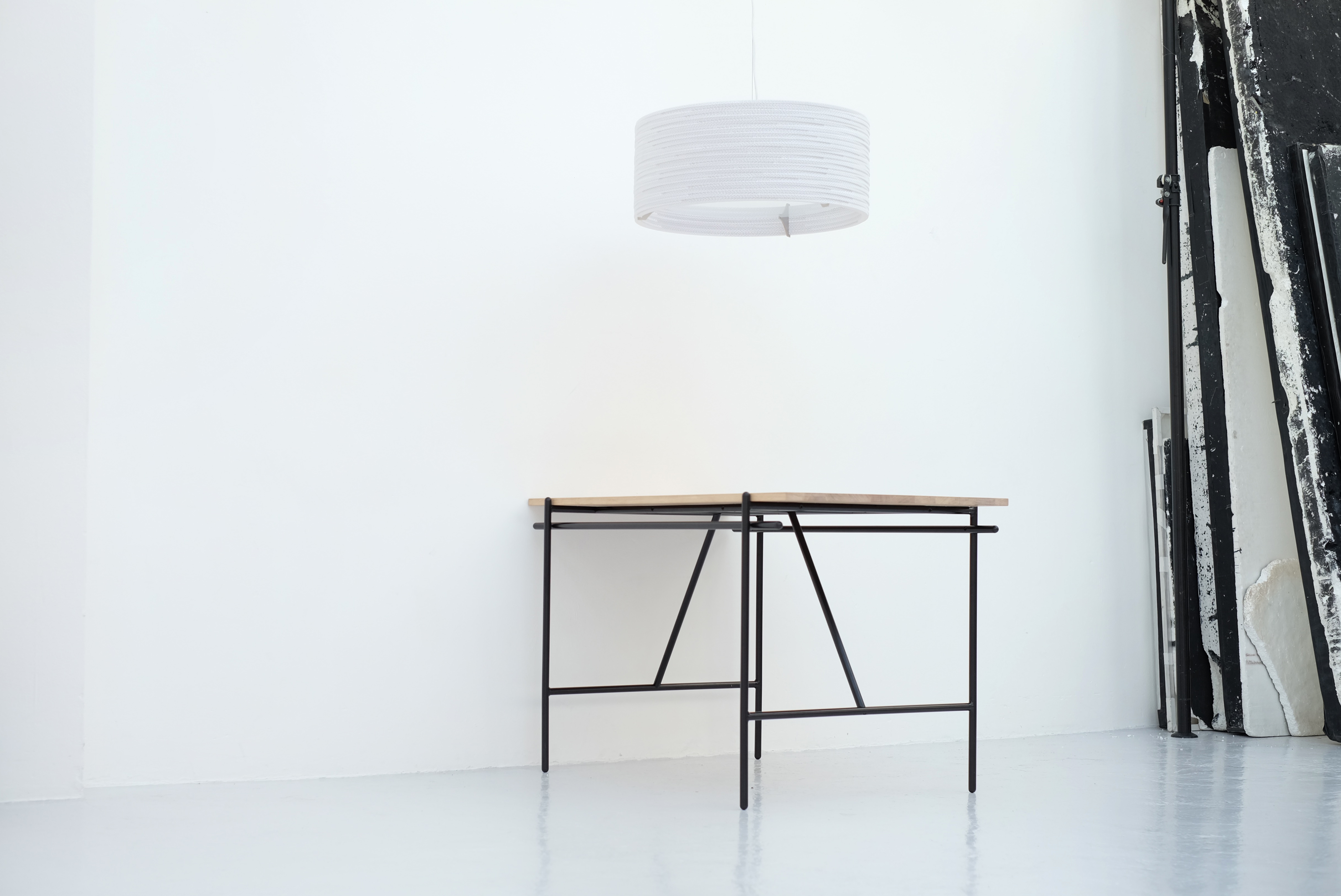 The new series of Graypants consist of many different pendant luminaires. Ausi, Bell, Disc Drop, Moon and Oliv fall within the Scraplight White Series. Drum and Ohio fall within the Scraplight Frame Series White. In addition, there are also a table lamp and a floor lamp in the Scraplight collection.