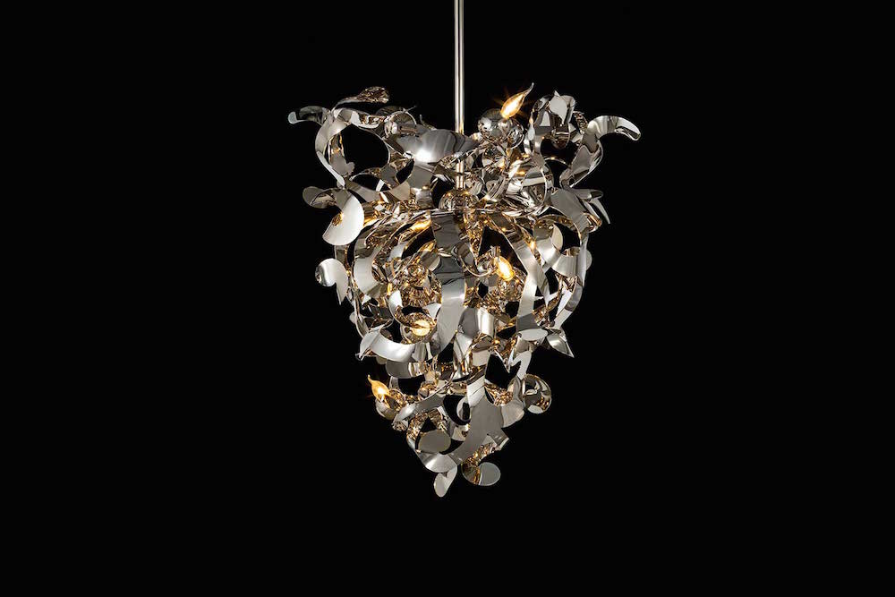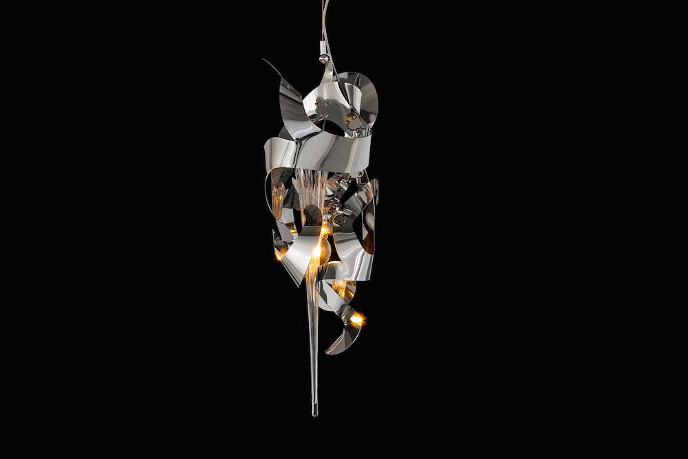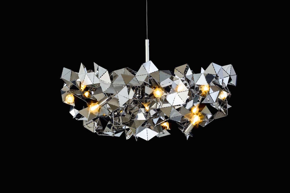 FRACTAL is a design made up of many triangles that have a modern look. All luminaires are handmade and are therefore unique! The depicted chaos of the reflecting elements of Fractal dispenses the light beautifully in all directions. FRACTAL is available in stainless steel, brass grinded, bronze, black matt and white matt.