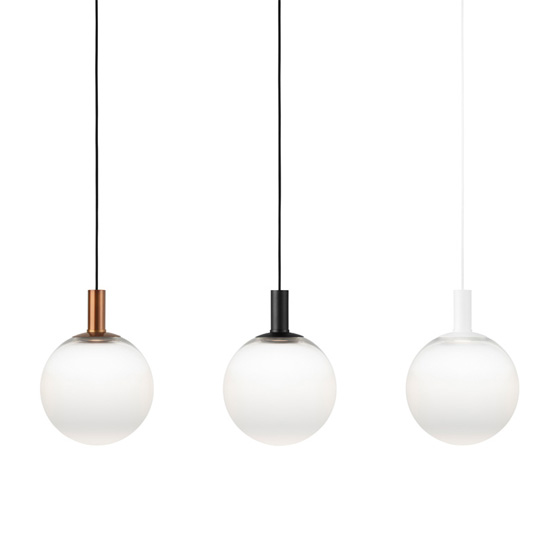 FOG is a lamp based on illusion, created by Front Design for Zero Lighting. These special spherical pendant lamps seem to have no apparent light source, but just a mystical glow shooting from the bottom of the sphere. FOG consists of a glass ball that is frosted at the bottom and graduates to transparent at the top. As stated by Zero Lighting: “The light appears to shoot up from the bottom of the globe, emitting an ambient glow that rises like a magically fiery fog”. The illusion of the light rising from the bottom of the sphere is actually created by a LED light source, well hidden in the socket of the of the lamp. This LED light source illuminates the frosted glass at the bottom so it seams to glow. This effect is strengthened in a dark surrounding, as the contrast between the top and bottom of FOG is more intense. FOG is available with different colour sockets: copper or powder-coated in black or white. There are three different sizes available, which makes FOG very suitable for different situations, put together as a cluster or suspended separately to fit any need.