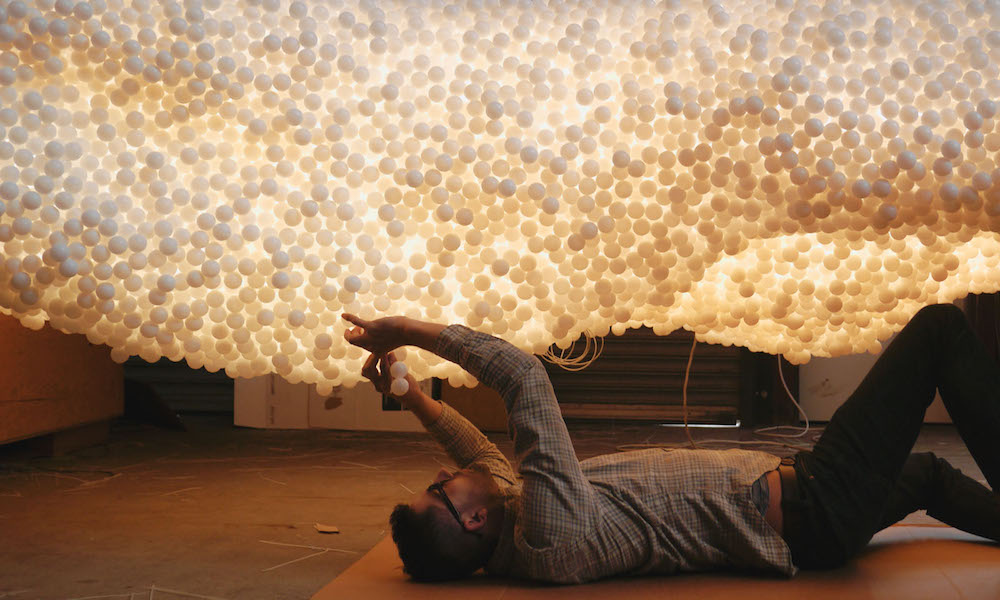 CLOUD is hand-crafted with 30.000 ping-pong balls. Each CLOUD chandelier has programmable LED colour lights and is a beautiful gain to every environment!
