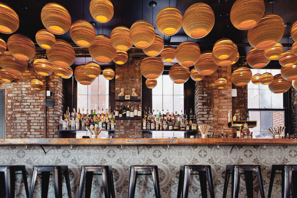 SCRAPLIGHTS are well-known fixtures by Graypants made of cardboard which are treated with a fire retardant. These fixtures provide functional and warm lighting for every occasion and space.