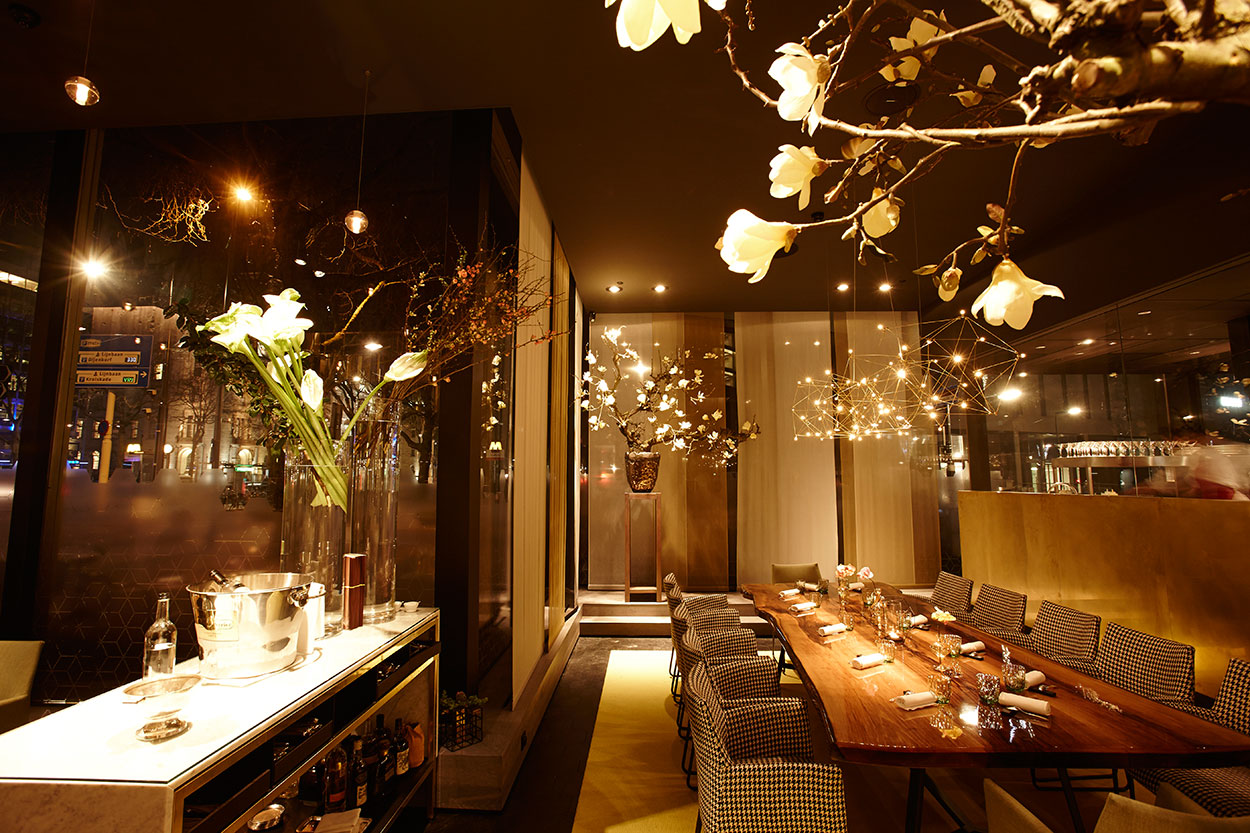 In het hele restaurant koos Maeker bewust voor led. “We hebben uiteraard hoogwaardige led gebruikt. Juist voor voedsel is de lichtkleur erg belangrijk. Bij een verkeerde keus kan een rode biefstuk opeens bruin lijken of een groene salade een blauwige glans krijgen. Dat wil je niet. De keus voor led was overigens ook een praktische. De lichtbronnen hoeven niet vervangen te worden. Dat is prettig in een restaurant met hoge plafonds. En de energierekening is lager.”