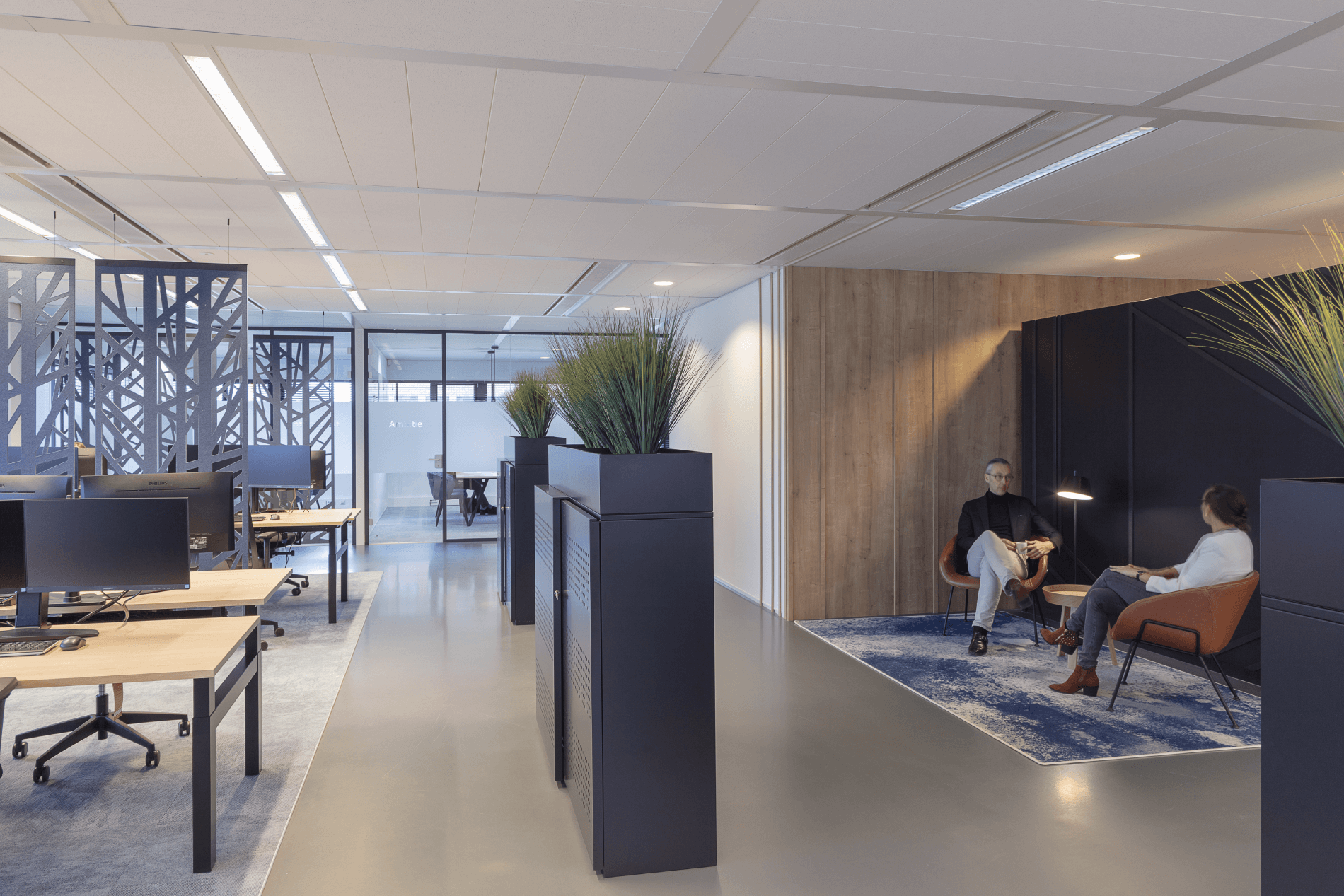 Based on the philosophy that everything that you spend your attention on grows, attention is a central theme in Bender's company culture. This culture translates into attention for students, clients and employees. It was the starting point for Rever Interior Projects for interior design with lots of greenery, an environment where people can relax and feel comfortable. Through smart lighting, colour scheme and choice of materials, the desired atmosphere was conceived.